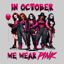 Make a fierce statement this October with the “In October We Wear Pink” DTF transfer, featuring powerful women styled in horror-inspired masks and bold pink streetwear. Blending strength, awareness, and edgy design, this artwork celebrates Breast Cancer Awareness Month with attitude and style. Perfect for sweatshirts, hoodies, and tees, it’s great for awareness walks, fundraising events, or simply showing support with a unique look. Smash Transfers’ premium DTF process ensures vibrant pinks, crisp detail, and long-lasting durability on cotton, polyester, and blends. A must-have for those who want to raise awareness with fearless fashion.