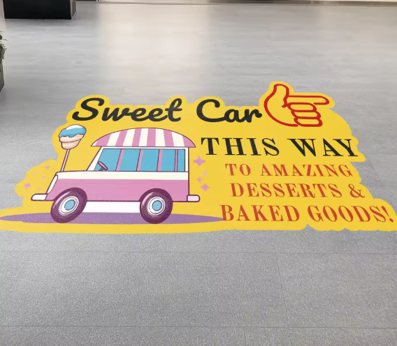 Transform your indoor space with vibrant, anti-slip floor graphics engineered for concrete, tile, and smooth surfaces. These durable stickers guide foot traffic, highlight promotions, and reinforce your brand identity throughout retail, office, and commercial environments. Available in sizes up to 48"x96" with white or black backgrounds, they deliver professional visual impact while maintaining safety standards. Perfect for wayfinding, product launches, or directional signage that commands attention.